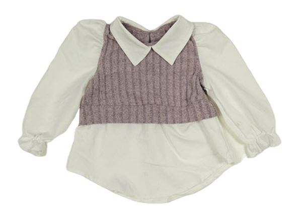 Biela blúzka so starorůžovo/šedou melírovanou žebrovanou úpletovou vestou SHEIN