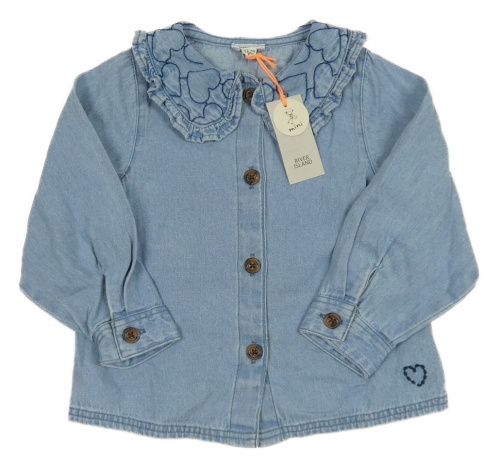 Nové - Modrá rifľová blúzka s golierikom so srdiečkami River Island