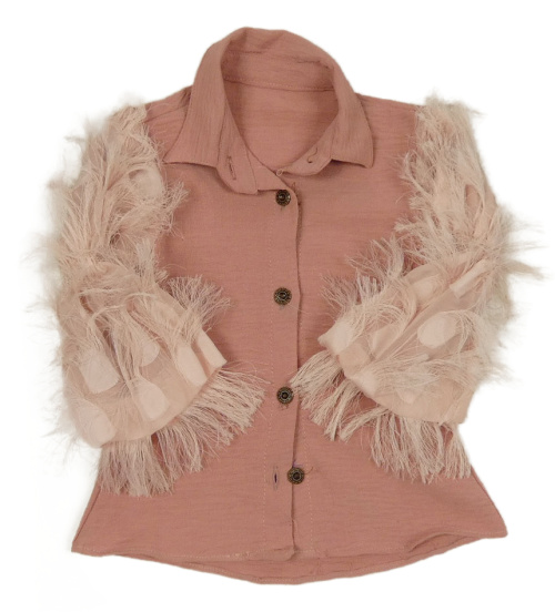 Ružová blúzka s šifónovými rukávy s strapcemi