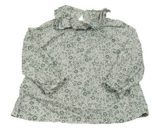 Bílo-khaki blúzka s kvetmi a větvičkami a volánikom TEX
