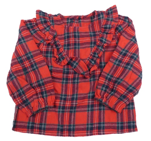 Červeno-čierno-zelená kockovaná flanelová blúzka s volánem George