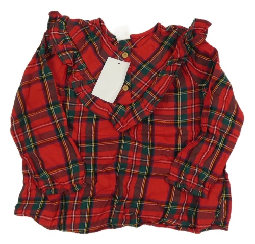 Nové - červeno-tmavozeleno-kockovaná blúzka s volánikom H&M