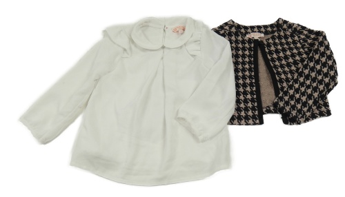 2 set - biela ľahká halenka + čierno-ružové vzorované úpletové bolerko