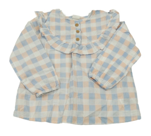 Světlemodro-meruňkovo-biela kockovaná blúzka s volánem H&M