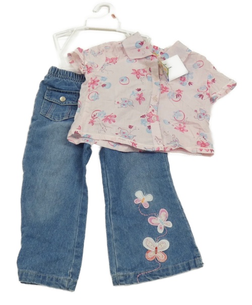 Nové - ružová blúzka s kytičkami+ modré rifle s motýlikmi