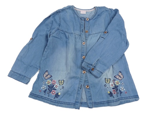 Modrá ľahká rifľová prepínaci tunika s výšivkami motýlků