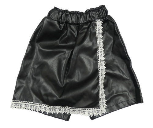 Čierne koženkové sukňové kraťasy s čipkou