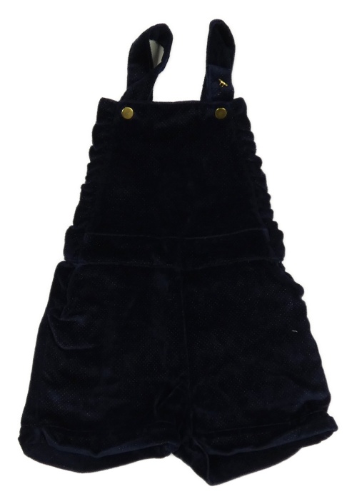Tmavomodré bodkovaná é sametovo/manšestrové na traké kraťasy s volánikmi CYRILLUS