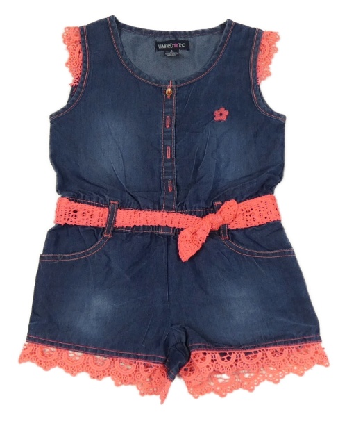 Tmavomodro-neónově ružový rifľový letný overal s čipkou Limited Too