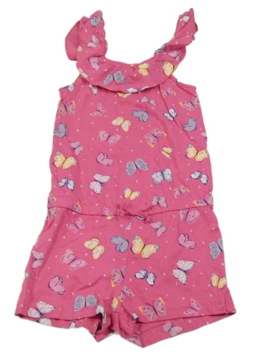 Ružový kraťasový overal s motýlikmi a volánikom Pocopiano
