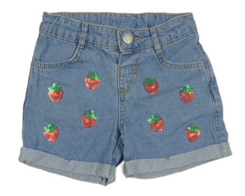 Modré rifľové kraťasy s jahodami z flitrů Lc waikiki