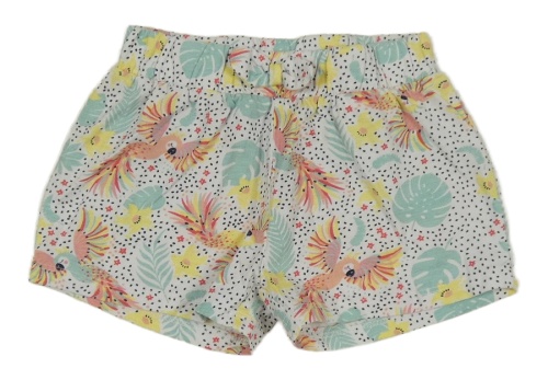 Bielo-čierne bodkovaná é kraťasy s papoušky a lístečky Kids