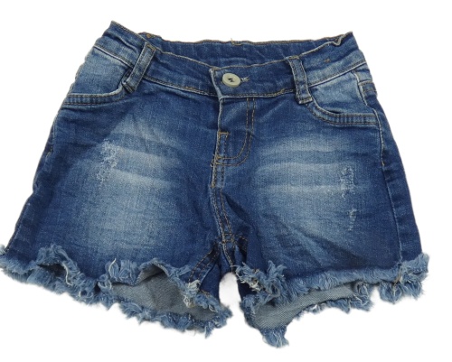 Tmavomodré rifľové kraťasy s roztřepenými lemy