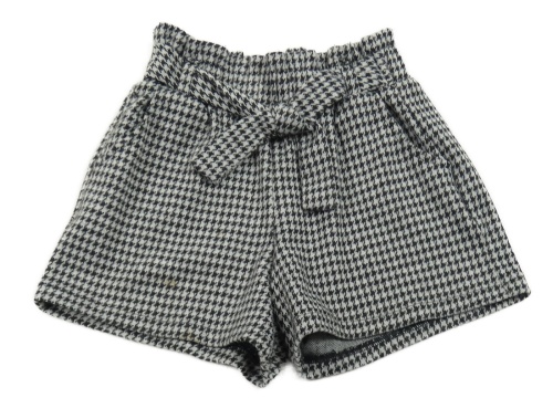 Čierno-bílo/světlešedé vzorované paper bag kraťasy so zavazováním Tu
