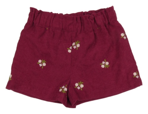 Vínové rebrované kraťasy s výšivkami květin Tu