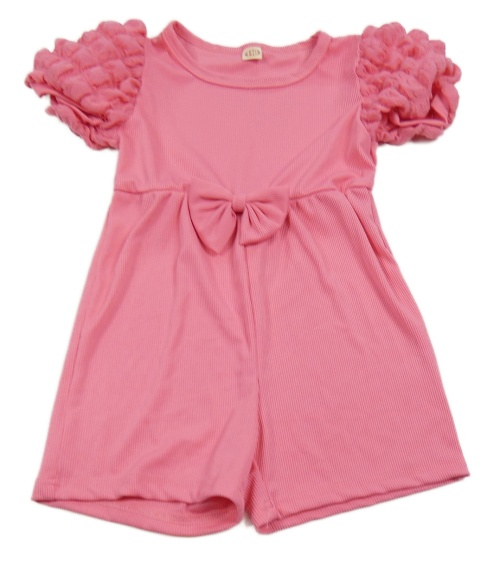 Ružový rebrovaný kraťasový overal s mašlou