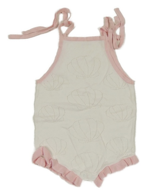 Bielo-ružový úpletový kraťasový overal s mušličkami