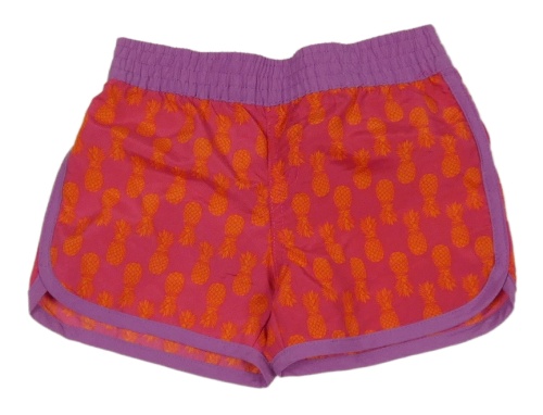 Fuchsiovo-fialové plážové kraťasy s ananásmi