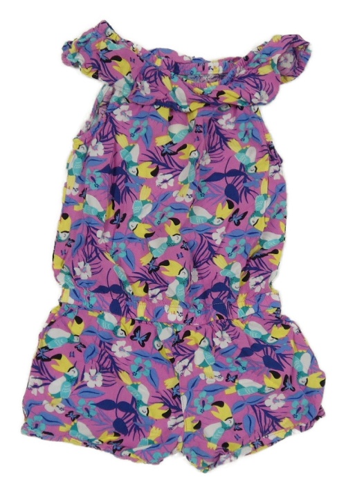 Růžovofialový kraťasový overal s tukanmi a lístečky a volánikom Kiki&Koko