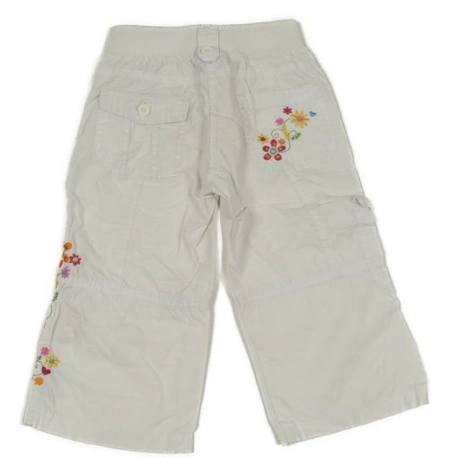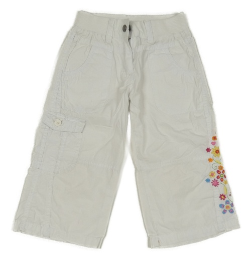 Biele capri plátenné nohavice s kvietkami a vreckom a úpletovým pasom Topolino