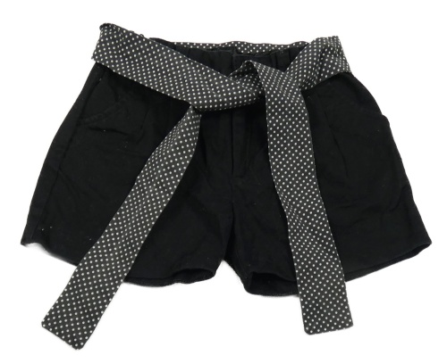 Čierne rifľové chino kraťasy s výšivkami a opaskom Prénatal