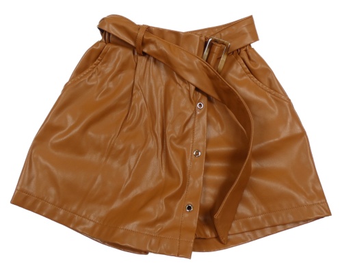 Hnedé koženkové kraťasy so sukní a opaskom SHEIN