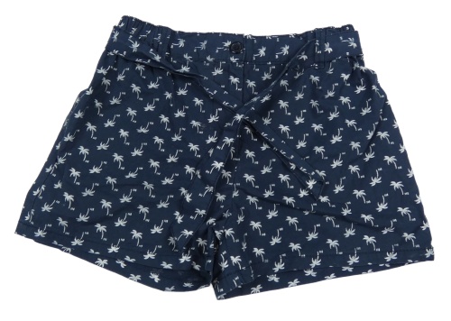 Tmavomodré plátenné kraťasy s palmami a opaskom LA REDOUTE