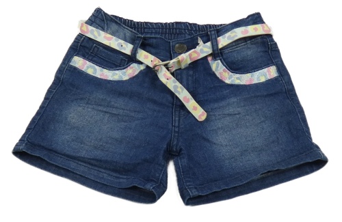 Tmavomodré rifľové kraťasy s výšivkou a opaskom Kiki&Koko