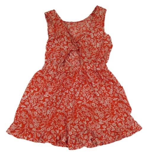 Červeno-biely kraťasový overal s kvietkami a volánikmi Next