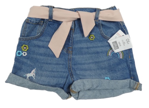 Nové - Modré rifľové kraťasy s opaskom a výšivkou F&F
