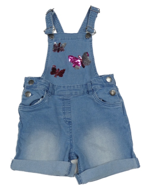 Modré rifľové na traké kraťasy s motýly z překlápěcích flitrů Topolino