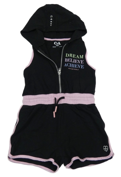 Čierno-svetloružový kraťasový overal s nápismi a kapucňou C&A