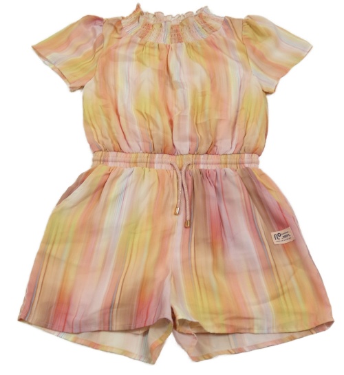 Žlto-ružový pruhovaný šifónový kraťasový overal