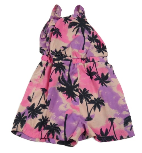 Fialovo-ružovo-pudrový letný overal s palmami PEP&CO