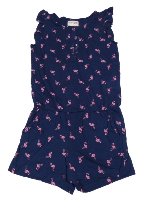 Tmavomodrý kraťasový overal s plameňáky