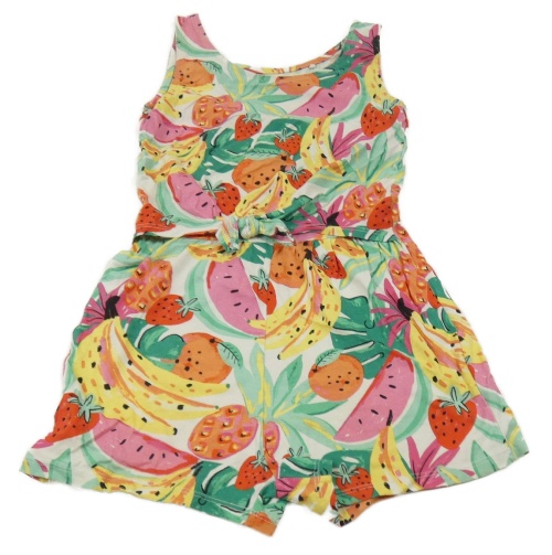 Bielo-farebný bavlnený kraťasový overal s ovociem Tu