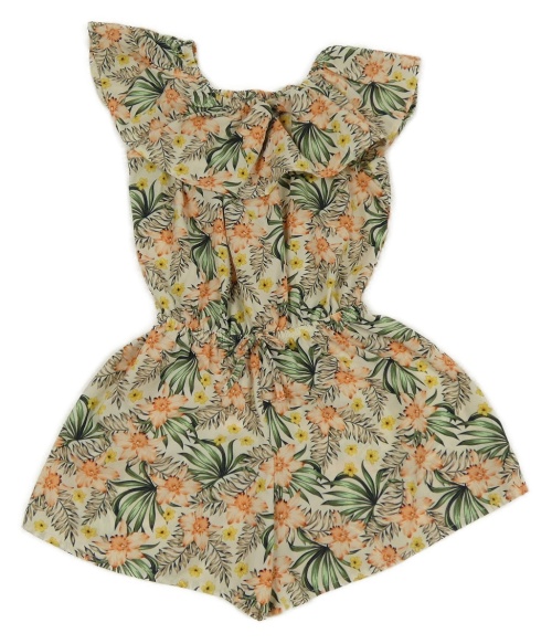 Béžový kvetovaný ľahký kraťasový overal s listami a volánem Name it