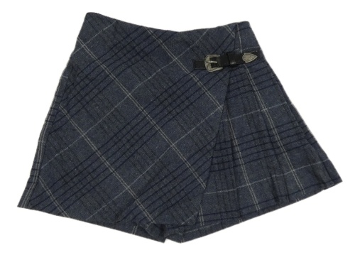 Tmavomodro-sivé kockované vlnené sukňové kraťasy Zara