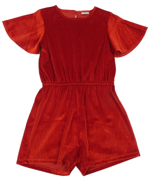 Červený trblietavý zamatový kraťasový overal F&F