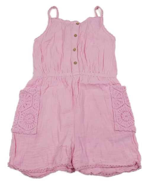 Ružový plátenný kraťasový overal s háčkováním Matalan