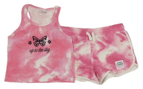 2Set - Ružovo-biele batikované teplákové kraťasy s nášivkou + crop top s motýlkom Page one young