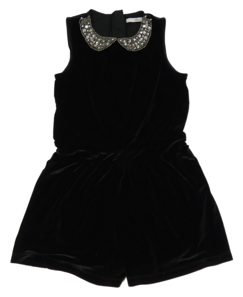 Čierny zamatový kraťasový overal s golierikom s korálkami a kamienkami M&S