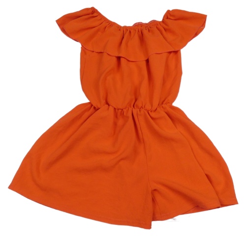 Pomeranačový kraťasový overal s volánikom