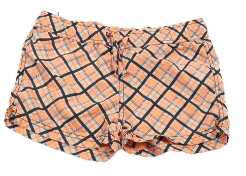 Bielo-sivo-neónově oranžové kockované plážové kraťasy
