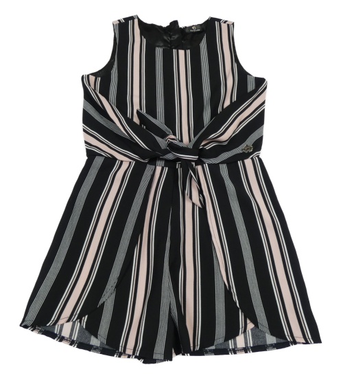 Čierno-bielo-ružový pruhovaný kraťasový overal Firetrap