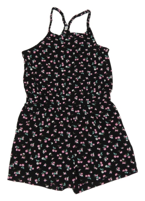 Čierny kvetovaný bavlnený kraťasový overal C&A