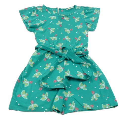 Zelený kraťasový overal s vtáčky a opaskom kids