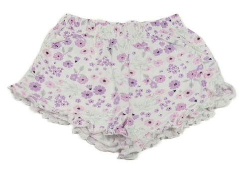 Bielo-lila-ružové kvetované kraťasy