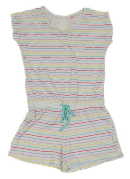 Bielo-farebný pruhovaný bavlnený kraťasový overal Alive