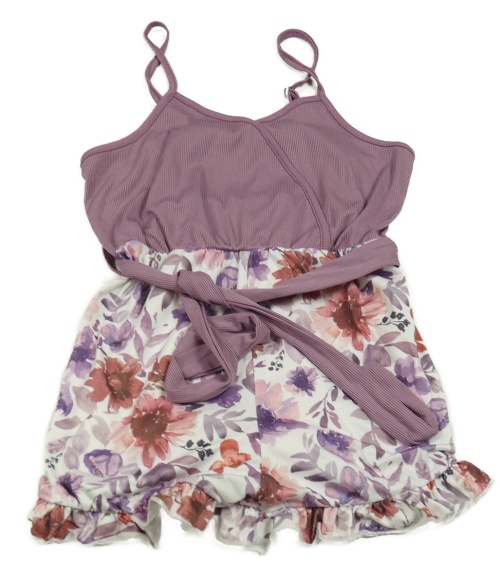Fialovo-biely kraťasový overal s kvetinami a opaskom Shein